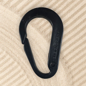 Our carabiner clips do more than hold your gear—they carry a story. Each one is crafted from black polypropylene (PP) rescued from unwanted DVD cases sourced from local charity shops.