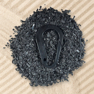 Our carabiner clips do more than hold your gear—they carry a story. Each one is crafted from black polypropylene (PP) rescued from unwanted DVD cases sourced from local charity shops.