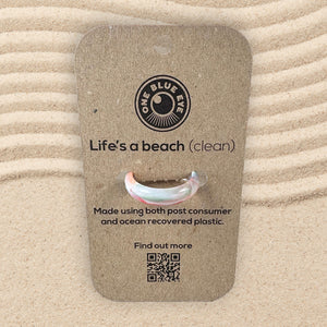 This ring is crafted from 100% locally sourced recycled plastic, harvested through dedicated beach clean initiatives. By repurposing waste plastic collected from Cornish shores, it not only keeps the beaches pristine but also breathes new life into discarded materials.
