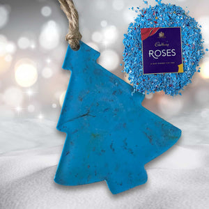 Crafted from recycled sweet tubs – including Quality Street, Heroes, Celebrations, and Roses – which we collect all year round, shred, and mould into stunning, one-of-a-kind ornaments for your festive tree.