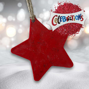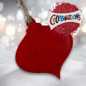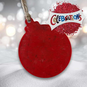Crafted from recycled sweet tubs – including Quality Street, Heroes, Celebrations, and Roses – which we collect all year round, shred, and mould into stunning, one-of-a-kind ornaments for your festive tree.