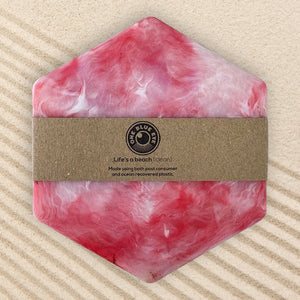 Set your drinks down in style with this 6-pack of coral coloured hexagonal coasters—crafted from 100% recycled plastic, each one unique and planet-friendly.