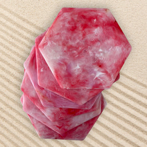 Recycled Plastic Coasters 6 Pack, Hexagonal, Coral