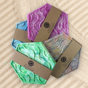 Each soap dish is made sustainably in Cornwall using 100% recycled plastic, giving new life to materials that would otherwise pollute our oceans. The wave-inspired design not only channels the beauty of the sea but also serves a functional purpose, allowing water to drain efficiently and keeping your soap dry for longer use. This reduces soap wastage and the need for frequent replacements.