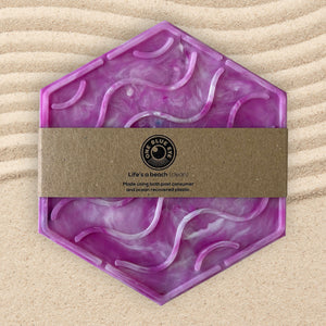 Recycled Plastic Wave Design Soap Dish, Hexagonal, Pink